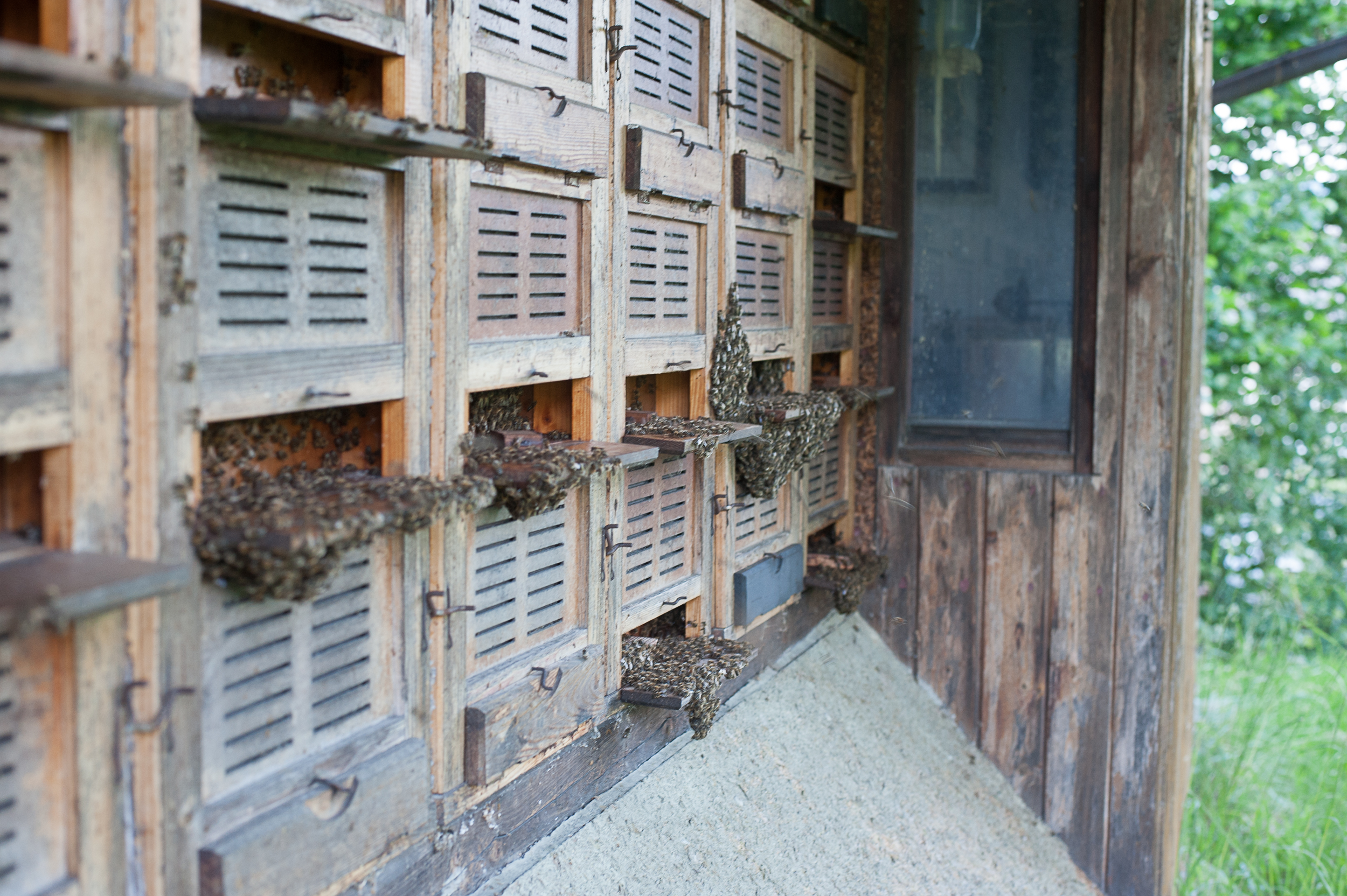 Zwei bis acht Bienenvölker leben im Bienenhaus und sammeln leckeren Honig.
